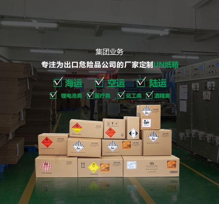 un纸箱广泛用于危险品外包装,比较常见的有鲤、电池类危包纸箱,化工/化学品类危包纸箱,酒精洗手液类危包纸箱,医疗类危包纸箱,化妆品类危包纸箱,香水类危包纸箱等等。